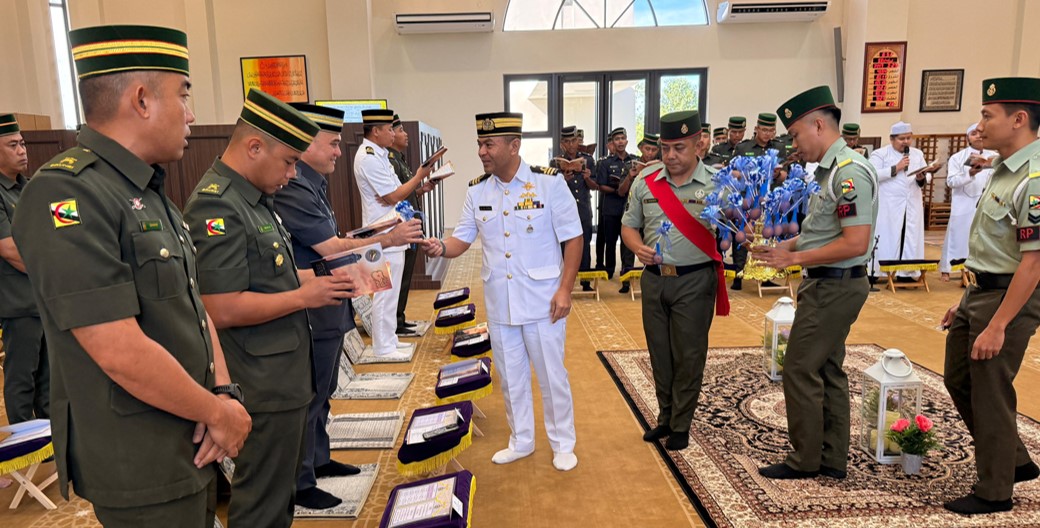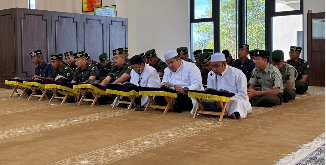 TANAH JAMBU, Friday, 19 September 2025 - Defence Academy Royal Brunei Armed Forces (DA RBAF) commenced The Khatam Al-Qur'an in conjunction with His Majesty Sultan Haji Hassanal Bolkiah Mu'izzaddin Waddaulah ibni Al-Marhum Sultan Haji Omar 'Ali Saifuddien Sa'adul Khairi Waddien, Sultan and Yang Di-Pertuan of Brunei Darussalam, 79th Birthday Celebration, for 1447 Hijrah at Surau Asy-Syuhada, Tanah Jambu.