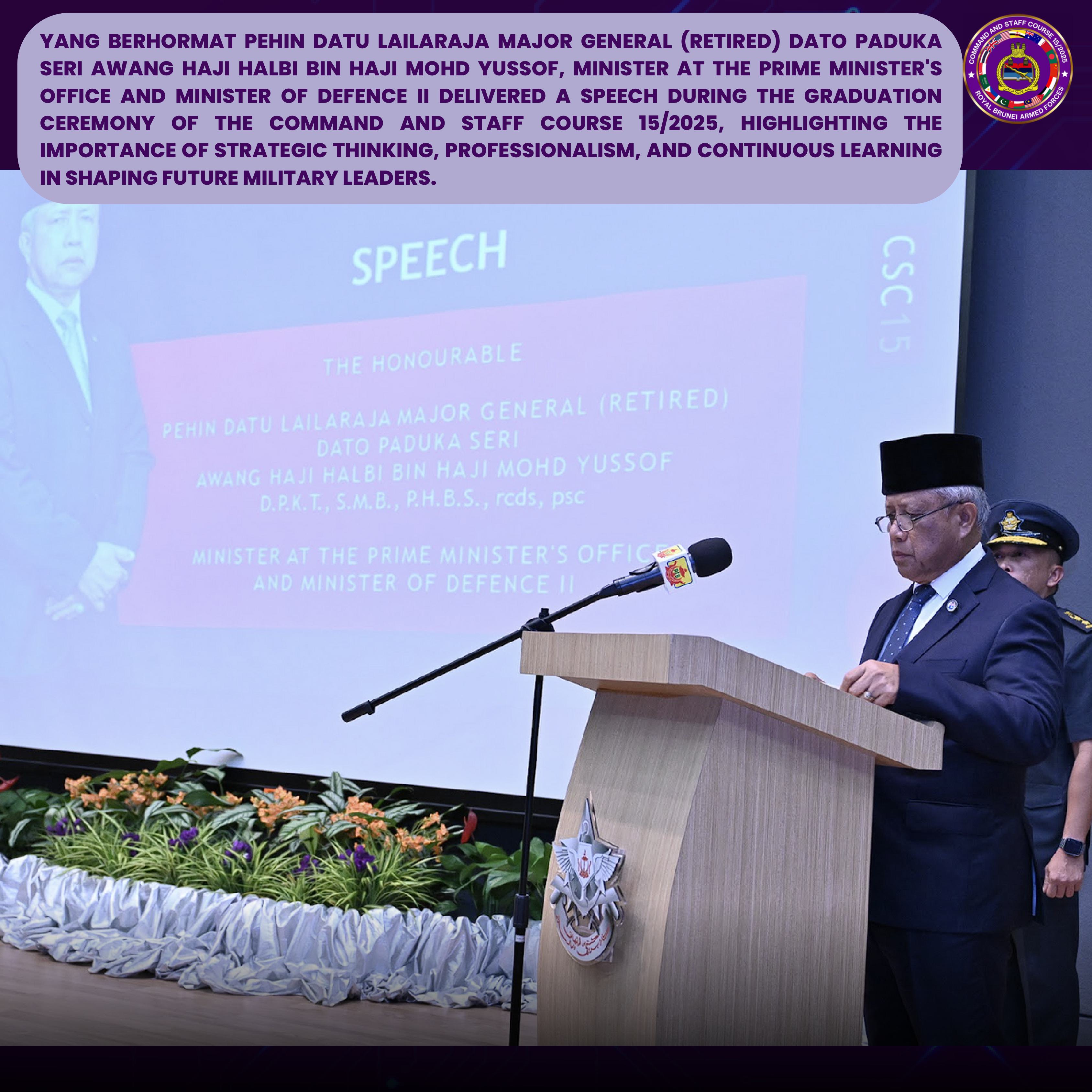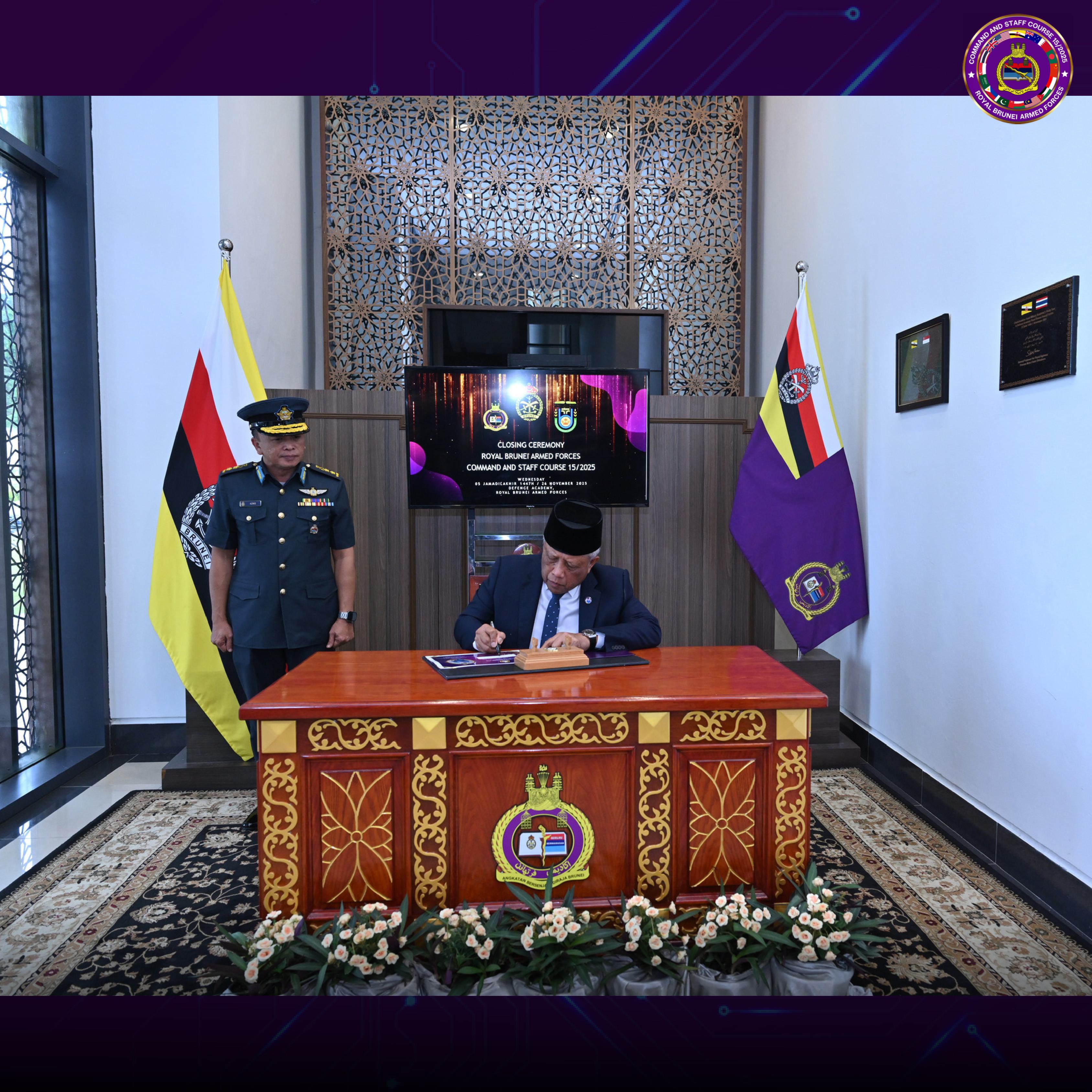 TANAH JAMBU. Wednesday, 26 November 2025 - The Royal Brunei Armed Forces (RBAF) Defence Academy officially concluded the Command and Staff Course 15/2025 with a closing ceremony held on 26 November 2025 at the Defence Academy, Royal Brunei Armed Forces. The ceremony marked the culmination of a year of academic rigour, leadership development, and international military cooperation, bringing together officers from Brunei and partner nations.
