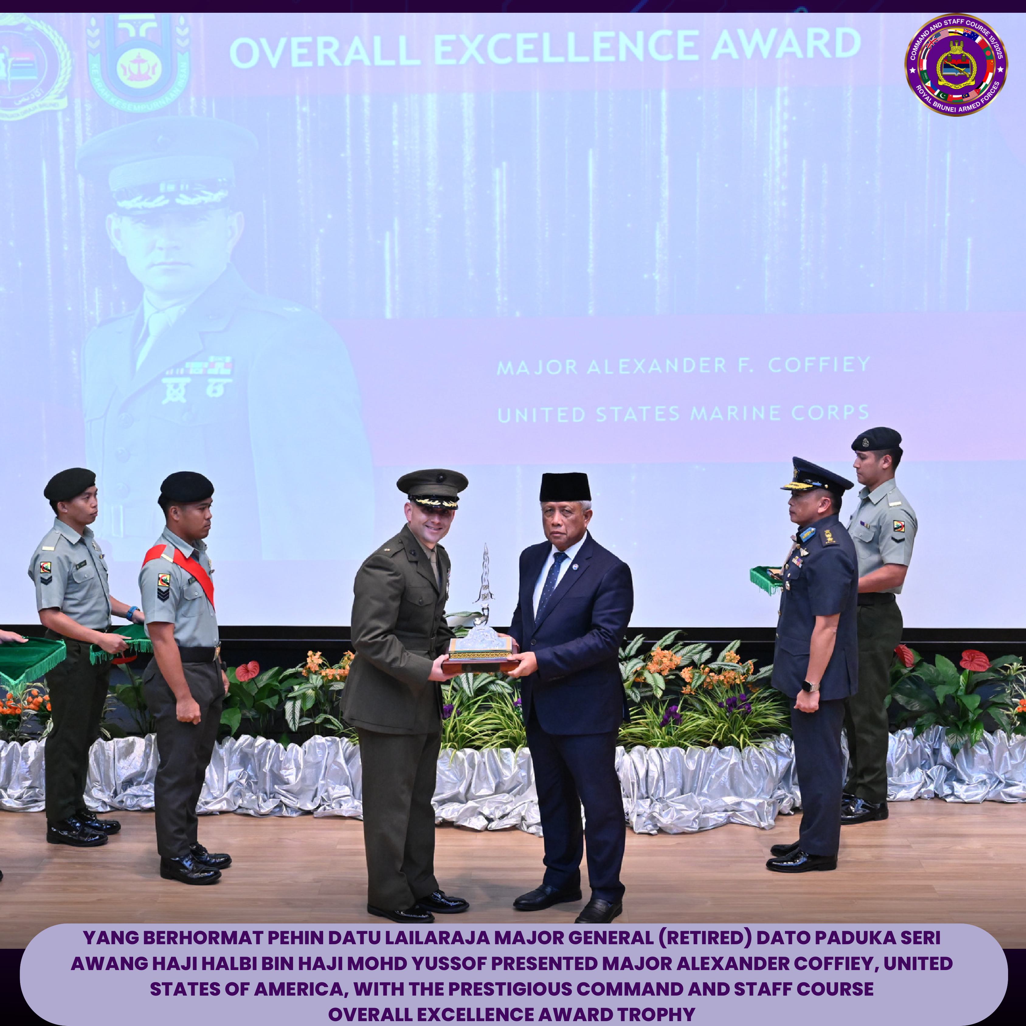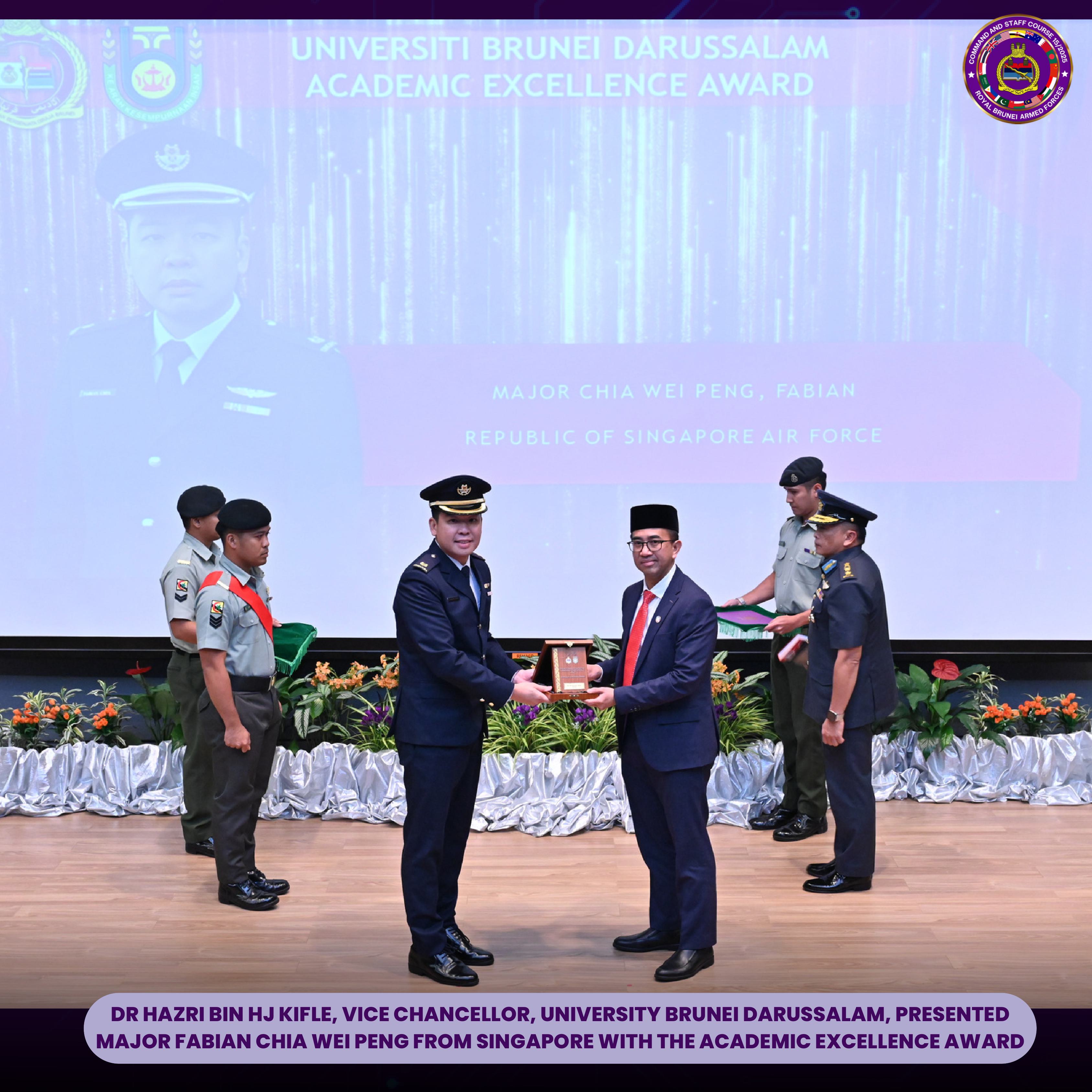 A series of awards were presented to honour outstanding achievements, including the Overall Excellence Award, Academic Excellence Award, and the RBAF Commendation Award, reflecting both academic distinction and exemplary military values demonstrated throughout the course.