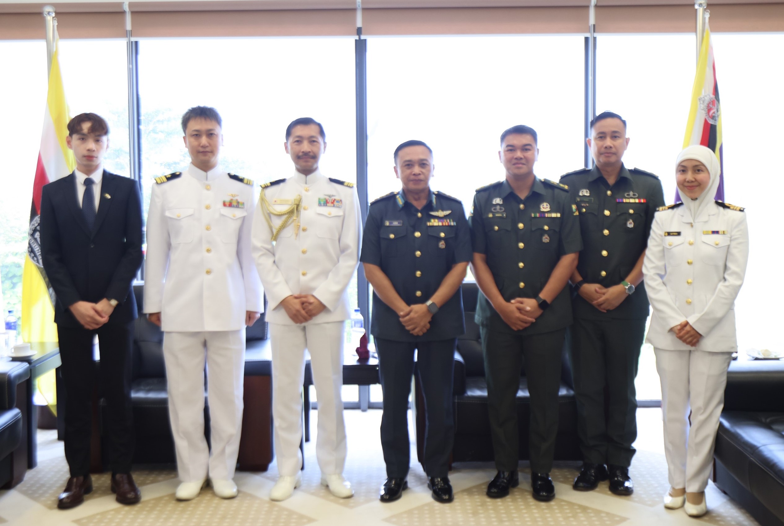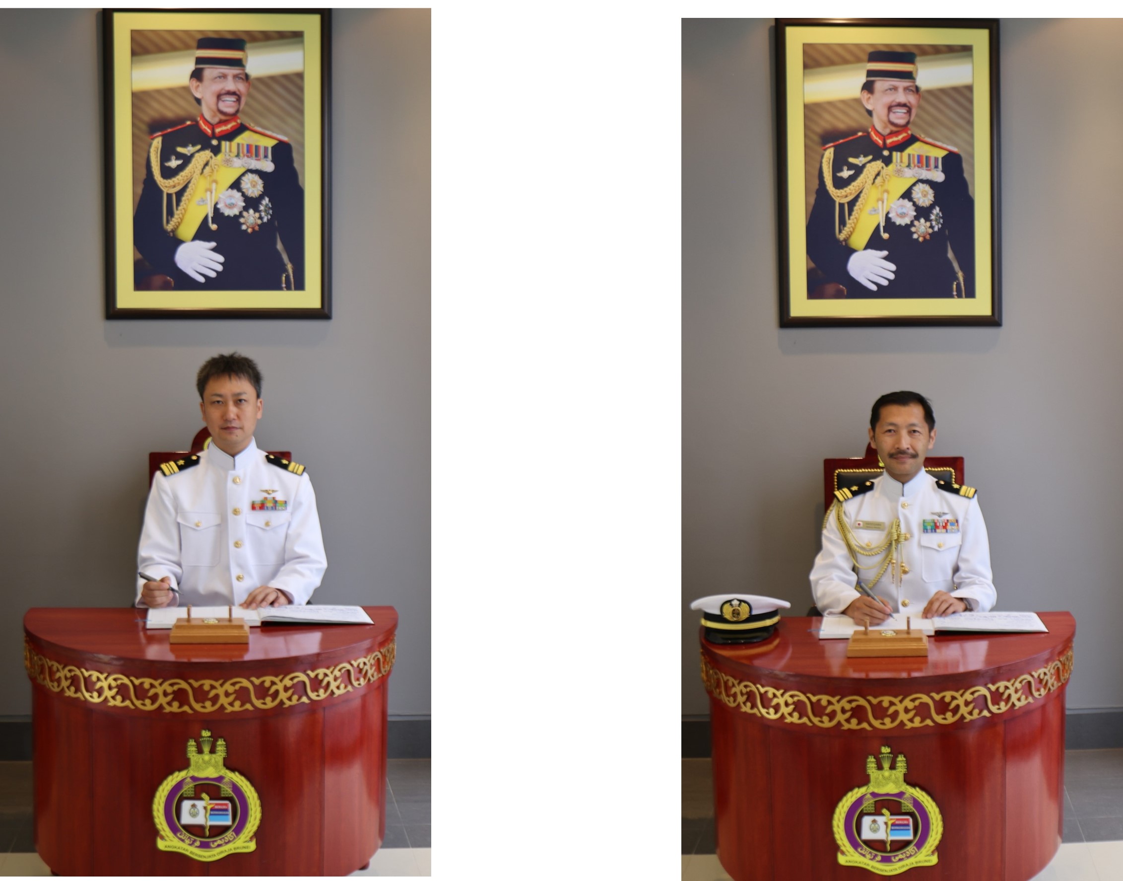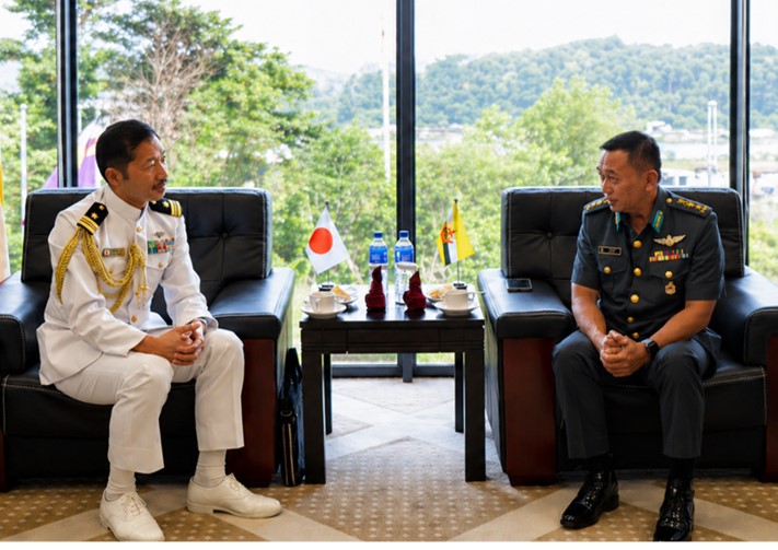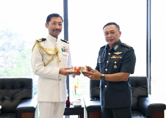 TANAH JAMBU, Monday, 20 April 2026 – Colonel (U) Azmie Iskandar bin Ariffin, Commandant of the Defence Academy Royal Brunei Armed Forces (DA RBAF), received an introductory call from Lieutenant Commander Hasegawa Takeshi, the first resident Japanese Defence Attaché to Brunei Darussalam, and a farewell call from Lieutenant Commander Wada Toshifumi, Security and Defence Affairs Officer at the Embassy of Japan in Brunei Darussalam.